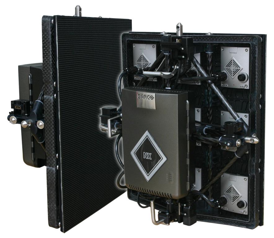 LED Video Wall Rentals – Barco NX-4. Rent hire this LED wall system which produces a phenomenal contrast ratio of 4000:1 and a calibrated light output of 2000 Nit. In addition, a super-black shader casting combined with optimized geometry ensures dramatically enhanced horizontal and vertical viewing angles, a significant reduction in light reflections and deeper black levels than ever before.Barco’s new “Mag-frame,” built of carbon fiber, forms a support system far stronger, far lighter, and ten times less sensitive to deformation than the current “metal” structures. It uses optimized glue rather than screws, providing extremely tight tolerances along all three structural axes (x, y and z). Not only is carbon fiber incredibly strong, it is also super light. The weight of the NX-4 tile including structure and cables is 21% less than ILite 6XP. For the crew, this translates into significant savings in terms of transportation, serviceability, and far less stress on the overhead truss. With Mag-frame, LED modules connect directly to the structure via high-strength neodymium “neo” magnets, rather than traditional screws. No tools are required for mounting or removal. With each magnet capable of holding over 1000 times its own mass, the result is precise positioning, super easy setup, and a totally seamless display.